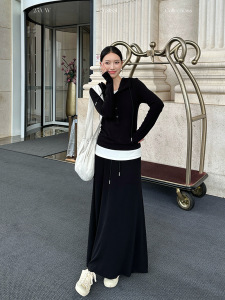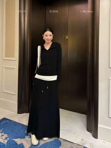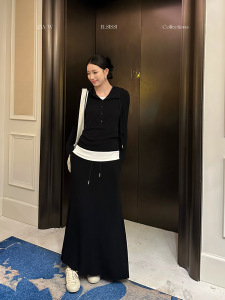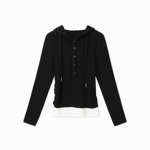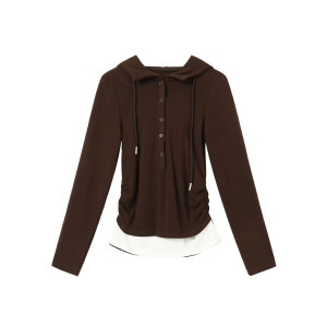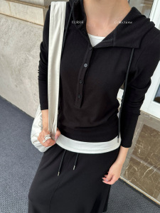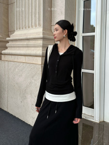 ELSISSI2025秋季新款假两件拼接连帽卫衣上衣ins慵懒风显瘦外套女