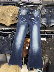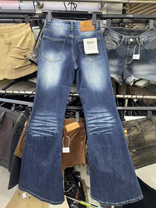美式怀旧微喇牛仔裤女辣妹中腰显瘦百搭弹力2025新款马蹄裤5827