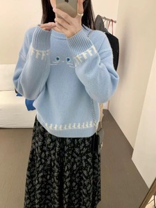 2025秋冬新款韩版甜美宽松慵懒风圆领套头毛衣女百搭针织衫打底衫