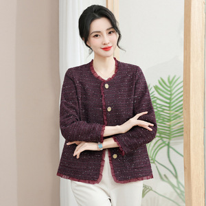 中年妈妈秋装小香风开衫外套2025新款洋气中老年女装春秋国风上衣