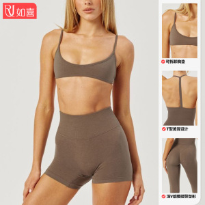 跨境欧美瑜伽健身文胸背心含胸垫美背吊带裸感速干高腰运动套装女