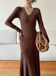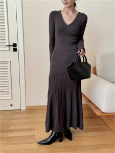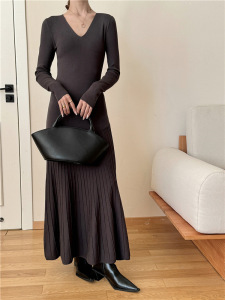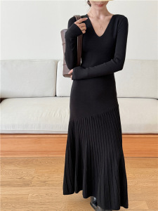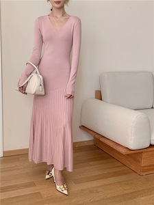 秋冬新款法式气质修身显瘦针织连衣裙女时尚洋气包臀鱼尾毛衣长裙