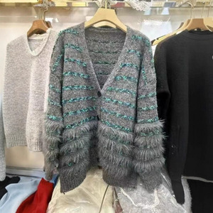 灰色V领长袖毛衣外套女2025秋冬新款减龄洋气轻奢百搭高级感开衫