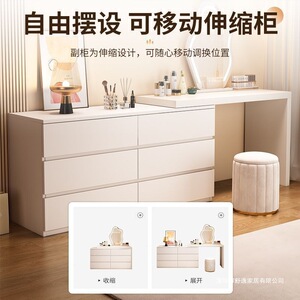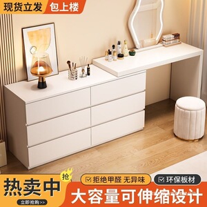 梳妆台卧室现代简约斗柜一体梳妆柜小户型轻奢床尾柜可伸缩化妆桌
