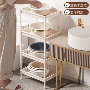 浴室洗脸盆架子卫生间置物架家用放桶盆架多层塑料加厚落地收纳架