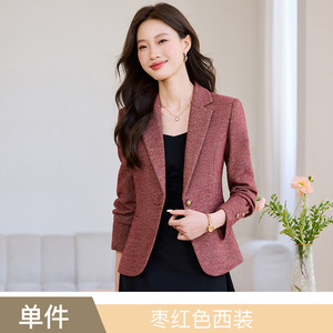 羊毛西装外套女秋冬2025新款高级感小个子短款女士小香风修身西服