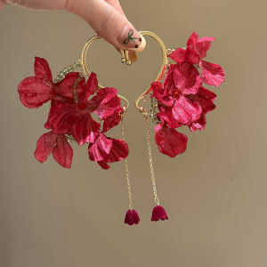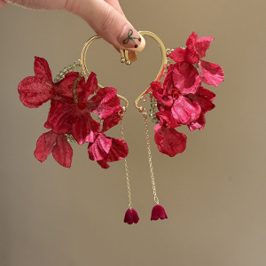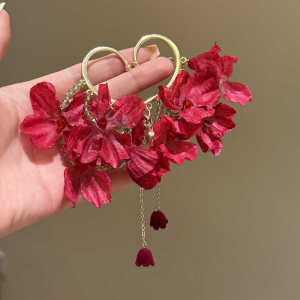 复古港风红色玫瑰流苏耳挂小众时尚精致温柔气质百搭女耳饰品批发