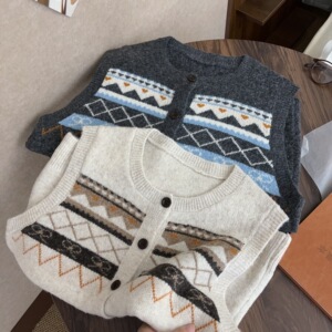 秋冬款韩系简约休闲百搭针织开衫女宽松休闲百搭上衣浅米色均码
