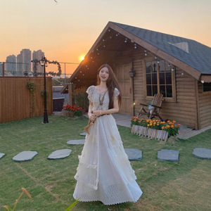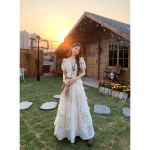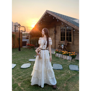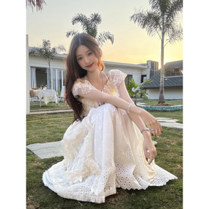 温柔风套装法式吊带连衣裙长裙女装夏季重工蕾丝罩衫度假风两件套