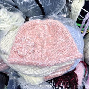 批发韩国2025年早秋新款韩系毛呢花朵ins毛线帽女包头冷帽针织帽