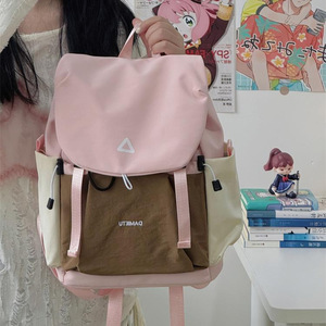 批发休闲撞色双肩包女户外防水大容量旅行电脑背包旅游轻便书包