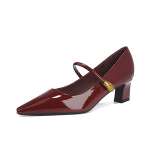 5168-11 法式复古漆皮方头气质一字带高跟鞋女粗跟单鞋中跟不累脚