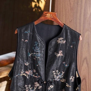 新中式国风香云纱重工刺绣马甲背心女2025春夏新款感坎肩马夹