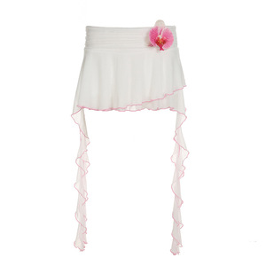 少女纯欲风立体花朵不规则网纱半身裙甜美撞色低腰百搭褶皱短裙