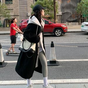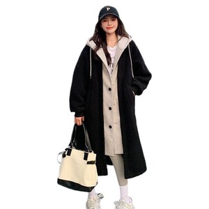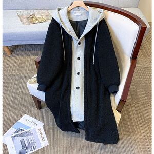 韩国chic2025秋冬新款长款连帽裙外套羊羔绒百搭宽松时尚外套百搭