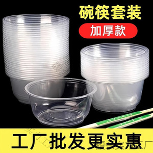 加厚一次性碗筷套装食品级快餐外卖塑料圆碗汤碗餐具商用打包盒