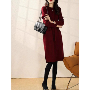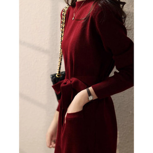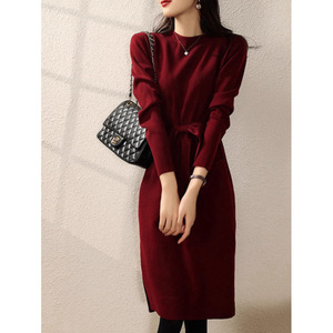 7465法式御姐轻熟风高级感针织连衣裙秋季新款复古百搭系带毛衣裙
