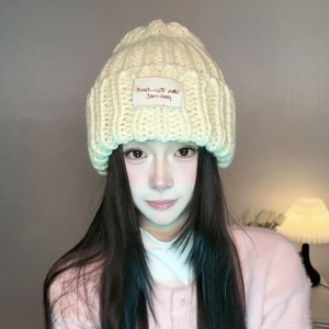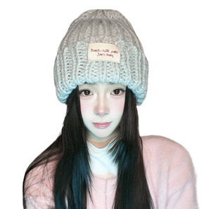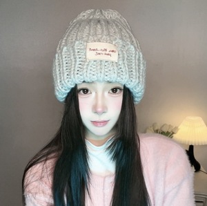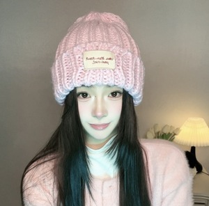 大头围绿色针织帽大头毛线洋气好看的帽子女显脸小冬天毛线帽女士