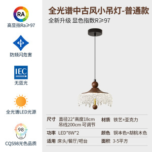 新中式卧室床头吊灯中古风覆古水滴可升降调节沙发旁背景墙装饰灯