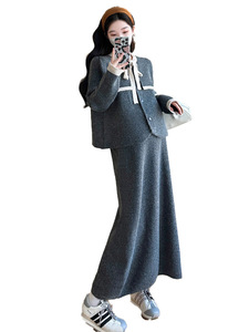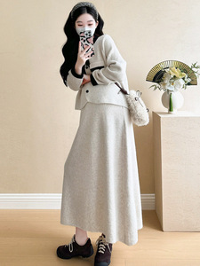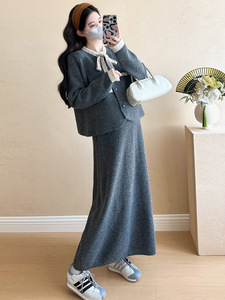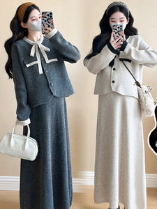 孕妇套装2025秋冬时尚显瘦韩版显瘦针织长袖气质上衣可调节半身裙