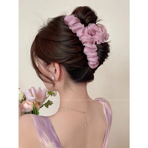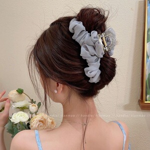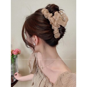 时尚网纱褶皱夹子头饰女气质后脑勺发夹盘发抓夹超仙超大号鲨鱼夹