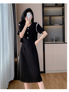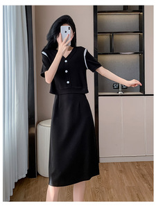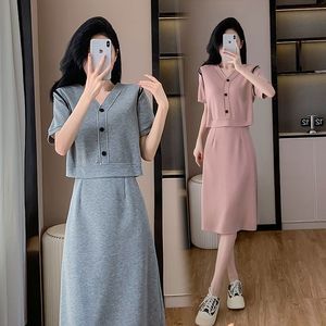 大码韩系假两件遮肚V领正肩连衣裙胖mm夏季百搭显瘦T恤裙气质优雅