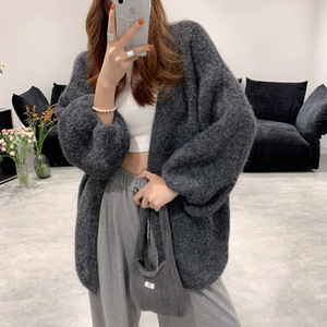 韩系慵懒风灯笼袖软糯毛衣外套女秋冬宽松大版气质洋气针织开衫
