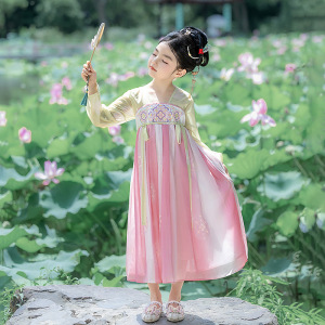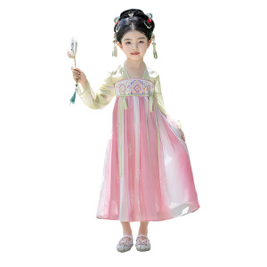 绮罗香 女童秋季新款古风连衣裙儿童汉服襦裙宝宝公主裙表演服仙