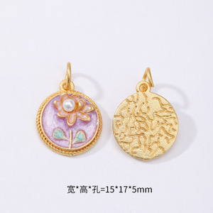 古法沙金莫奈花园珍珠滴油花朵吊坠配件新款复古油画风diy项链配