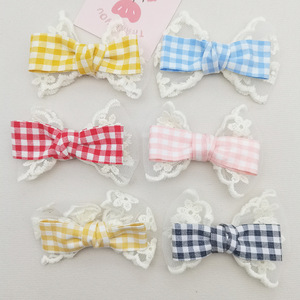 甜美蕾丝花边格子蝴蝶结饰品配件头饰DIY材料洛丽塔服装辅料批发