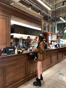 牛皮葡萄妈同款真皮圆头增高厚底系带马丁靴女小个子粗跟短靴踝靴