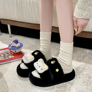 可爱卡通猫咪毛毛拖鞋女外穿2025年秋季新款毛绒懒人舒适毛拖鞋女