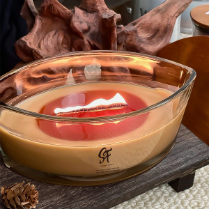 外贸大号船型香薰蜡烛大豆蜡玻璃杯带盖子浪漫伴手礼家居香薰摆件