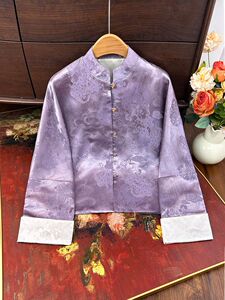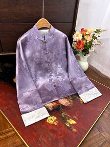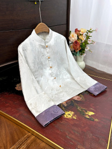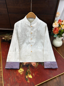 2025早秋款新中式国风提花外套衬衫女立领拼接袖显瘦气质开衫上衣