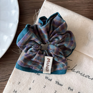 韩系新款早秋奶咖色布艺格纹女孩肠圈马尾发圈气质儿童百搭发绳