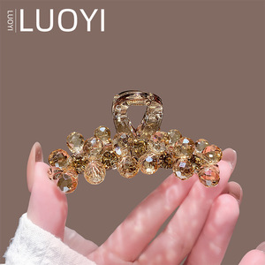 春夏新款香槟色水晶抓夹女高级感法式气质后脑勺半扎发鲨鱼夹头饰
