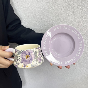 紫色牡丹花杯碟【礼盒装+礼袋】