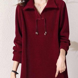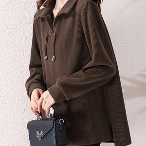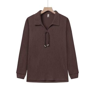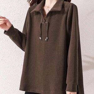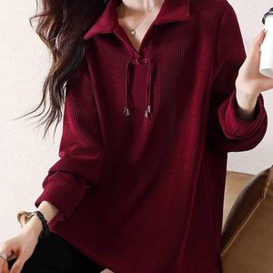 大码坑条新中式盘扣polo领上衣女2025早春新款宽松显瘦时尚长袖女