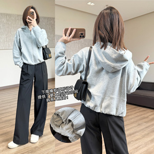 靓小靓小个子马斯线立裁卫衣!显瘦遮肉立体感连帽拉链早秋短外套