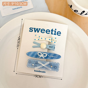 奶蓝色格纹小兔发夹少女甜美刘海夹边夹儿童碎发夹可爱鸭嘴夹发饰