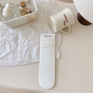堆堆袜子女春秋季中筒袜精疏棉日系纯色韩国无骨竖条袜月子长筒袜