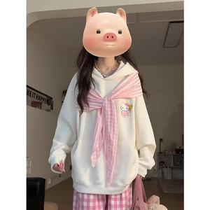 2025秋冬季设计感格子拼接格纹拉链外套韩系校园风宽松连帽女卫衣