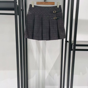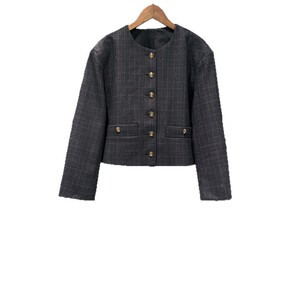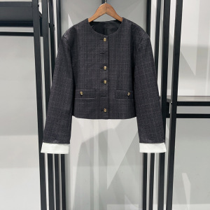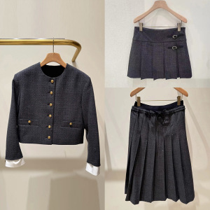 法式小众 2025秋冬时尚格纹圆领单排扣烫钻外套压褶半裙套装25662