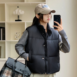 浅蓝色无袖立领羽绒棉服马甲女冬季新款小个子短款保暖面包服外套