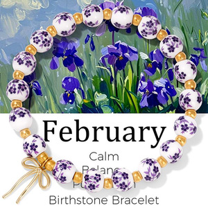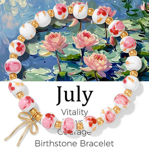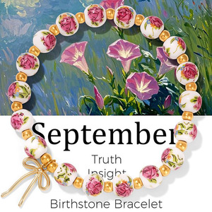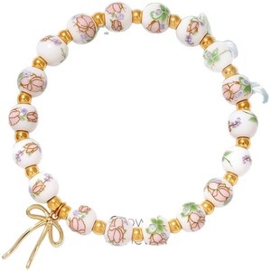 陶瓷碎花十二月青花瓷手链合金镶钻蝴蝶结吊坠金色圆珠青花瓷手链