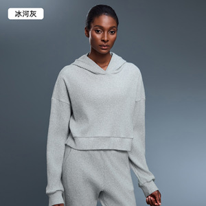 宽松连帽运动卫衣女针织百搭春秋上衣短款通勤休闲套头衫D25162