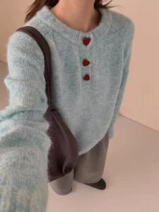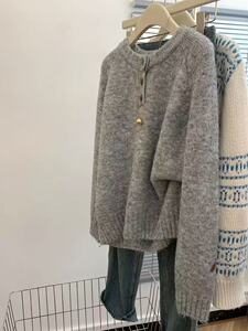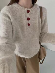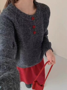 温柔圆领爱心扣套头毛衣女装2025秋冬新款宽松软糯百搭针织衫上衣