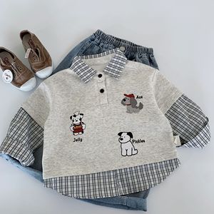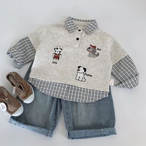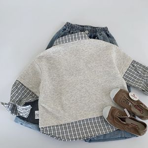 麦宝儿童卫衣2025春秋新款男女童格子假两件套头衫宝宝翻领上衣潮