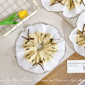 法式芭蕾风黄咖配色甜美可爱款大肠发圈女碎花百搭蝴蝶结发绳发饰
