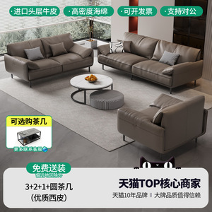 3+2+1+圆茶几组合【头层牛皮 高定款】 包安装